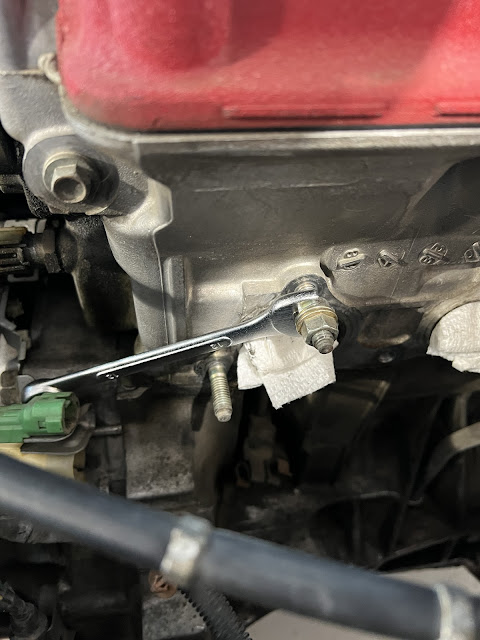 I ordered a tap to check and clean/repair the threads for the hole on the engine block since the Fujitsubo re-uses that bracket, and ordered some replacement bolts and washers from Honda. I sent the bracket to the powder-coating shop to get cleaned up and waited about a week to get it back.